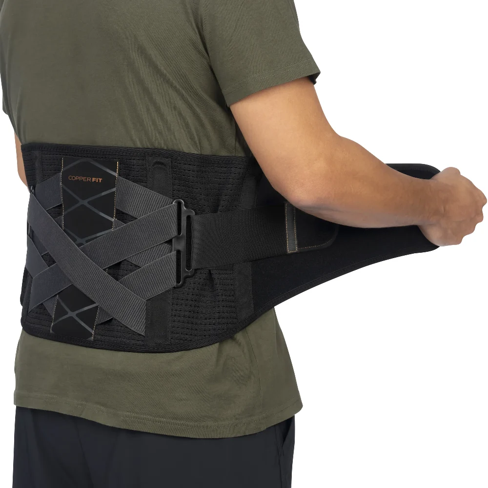 Engineered for everyday comfort, the revolutionary Copper Fit X Back Brace provides unique stability. With an Adjustable strap system, it replicates your spine's mobility and can fit under clothing. Ideal for everyday support, injury recovery or arthritis relief. Experience the difference today!